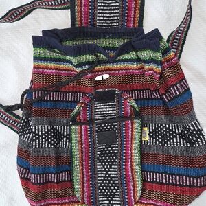 This vibrant multicolor striped backpack is perfect for daily adventures, festivals, summer go to or vacation travel. Its eye-catching design adds a splash of color to any outfit.