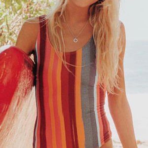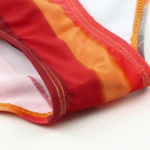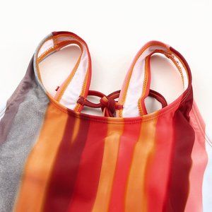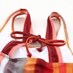 Striped color block makes the swimsuit trendy and eye-catching