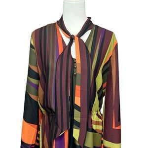 Elevate your wardrobe with this stylish multicolor striped dress. Perfect for any occasion, this dress features a blend of vibrant colors that make a bold statement.