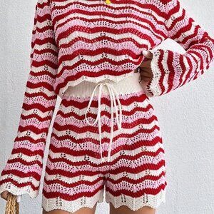 Multicolor Striped Women's Knit Top & Shorts Cover Up Set