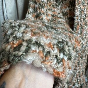 This cozy open front sweater cardigan is full of texture and color! Features fringe tassels along the hem and a multicolor woven design. All tags have been removed, but fits like a size XL.
