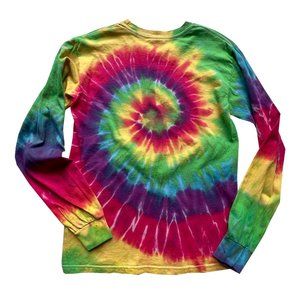 Multicolor Tie Dye Crewneck Long Sleeve Cotton T-Shirt, Size S, Gildan Heavy Wt.