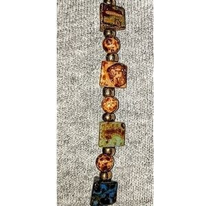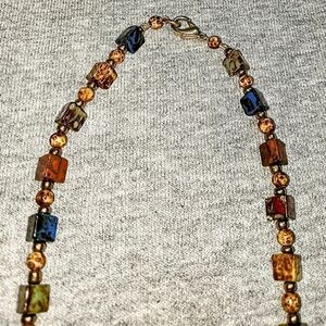 Multicolor Triangle Shaped Stone & Metal Bead Necklace 24"