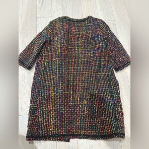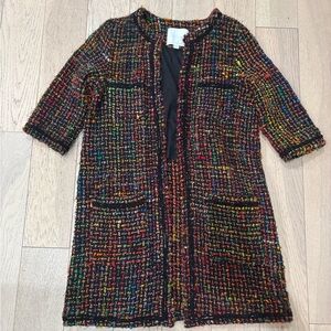 Colorful tweed jacket with open front. Features vibrant design. Only worn 3-4 times. The last picture is close up to show texture.