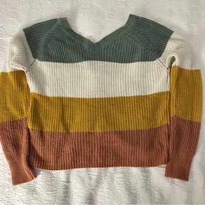 Embrace a vibrant look with this multicolor V-neck sweater. Perfect for adding a pop of color to your wardrobe.