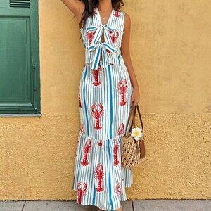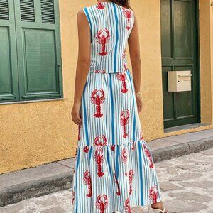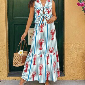 Multicolor Vacay Women's Sleeveless Tie Knot Butterfly Top & Long Skirt Set