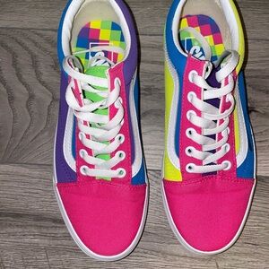 Vans Old Skool Neon Color-Block Skate Shoe - Multicolored (Pink / Purple / Yellow/ Green )