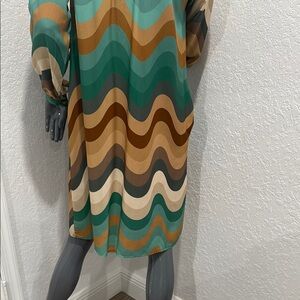 Embrace style with this multicolor wave pattern dress, perfect for any occasion. The vibrant design features shades of green, brown, and cream, offering a chic and modern look.