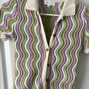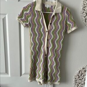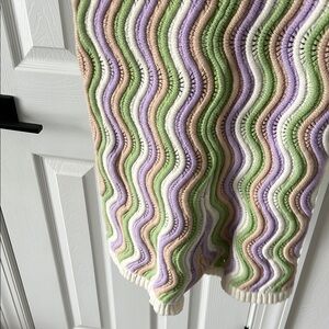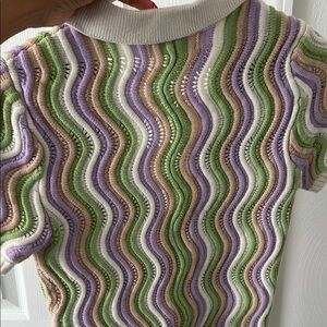 vibrant wave pattern in green, purple, and cream. Perfect for adding a pop of color to any outfit.