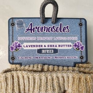One pair aromasouls, lounge socks with grip bottoms lavender, and shea butter infused