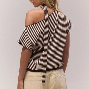 Multicolor Women's Asymmetrical Shoulder Slouch Stripe Scarf Detail blouse
