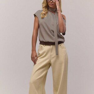 Multicolor Women's Asymmetrical Shoulder Slouch Stripe Scarf Detail blouse