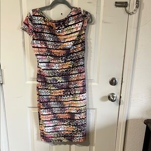 This vibrant multicolor dress is perfect for any occasion. Its bold design and comfortable fit make it a must-have in your wardrobe.