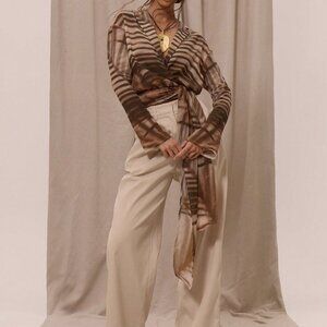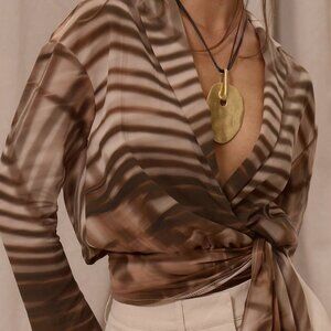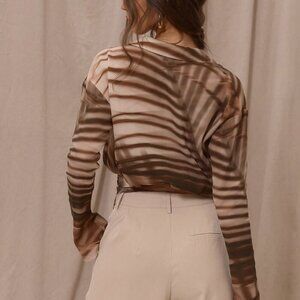 Multicolor Women's Elegant Boho Lapel Collared Chiffon Patterned Wrap top