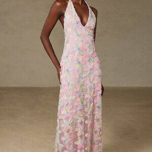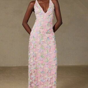 Multicolor Women's French Elegant Romantic Date Night Luxury Floral Maxi dress