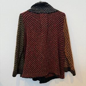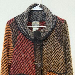 Multicolor Wool Blend Button Up Cardigan Red Green Yellow Fisherman Style Medium