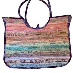 Soft multicolor hues of woven fabric make up this solid construction boho bag. Great for a Farmers Market. Dual handles. 1 button close. 2 inside pockets. Box bottom. NWOT.