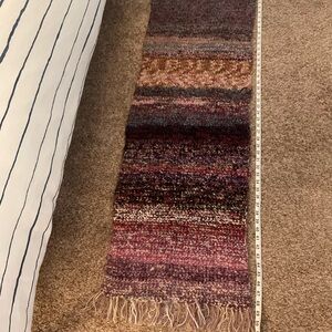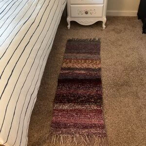 Beautiful multicolor rug with fringe. Perfect for adding texture and color to any room.