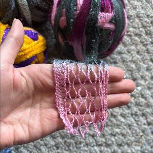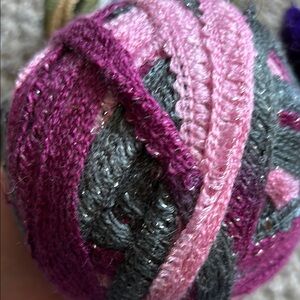 Explore your creativity with this vibrant yarn bundle. Read Heart Boutique Sashay yarn. One roll retails for 13.40 on amazon. One has never been opened. Two no longer have labels but have not been used. And two balls of the same yarn (one larger than the rolls and one smaller). Lots of fun colors. Get all 5 for $20, a steal if you know how much yarn costs!