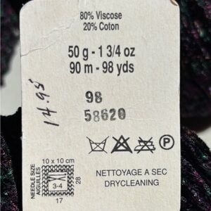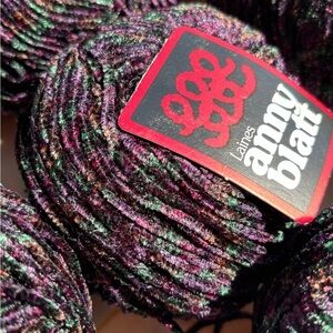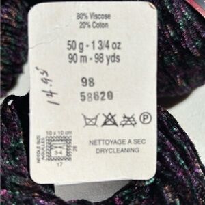 Explore your creativity with the multicolor yarn bundle. Perfect for knitting and crocheting projects, this yarn features a vibrant mix of purple, green, and black hues.