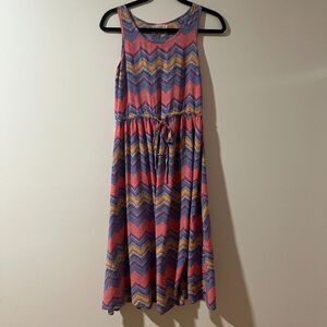 Embrace vibrant style with the Multicolor Zigzag Dress. Featuring a lively pattern in shades of blue, pink, and yellow, this dress is perfect for any occasion. Stand out with its unique design and comfortable fit.