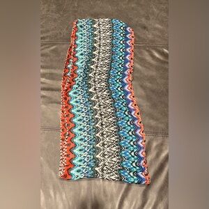 Add a pop of color to your outfit with this vibrant zigzag patterned scarf. Perfect for any season.