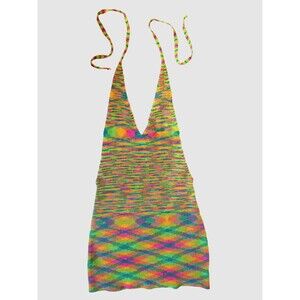 Multicolor backless knitted mini dress, sexy!! great pre-loved condition! size S
