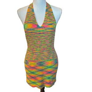 Multicolor backless knitted mini dress, sexy!! great pre-loved condition! size Small.