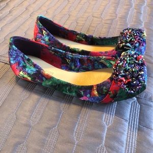 Ballet flats with embellished scrunched bows! Excellent condition. Worn once.