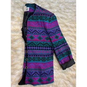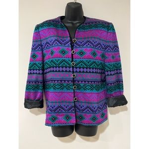 Multicolor blazer. Size 10. See pictures for measurements. Great condition. Has shoulder pads. Vintage.