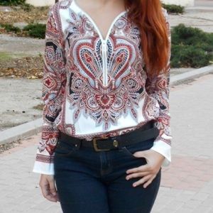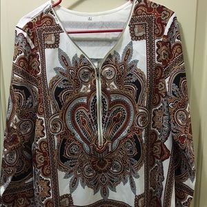 Fabric is polyester with no stretch. Size L. Brand new. Never ever worn. No tags. Reference images uploaded in the listing. Thanks for visiting!