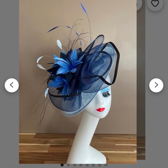 Powder Blue Sinamay Fascinator with Light/Dark Blue Feather Flower. Kentucky Derby Hat. Wedding Easter Hat. Tea Hat. Race Hat. Ascot Hat