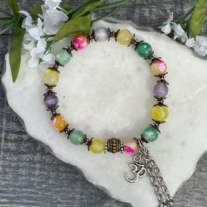 Multi-color fire agate stretch ohm bracelet