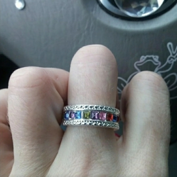 9.6 CT 925 silver cute ruby, emerald, topaz and sapphire. Multicolor gemstone ring, sizes 6 to 10. Check my profile for more offers.