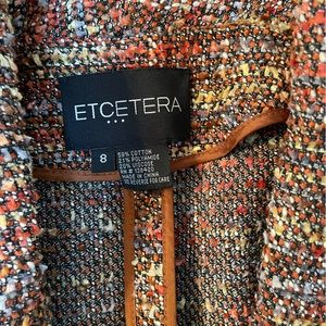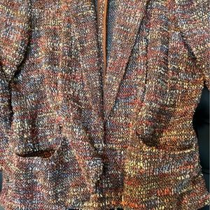 Perfect little jacket to dress up your jeans or wear to work. Multi-color long sleeve is great for fall with all the orange, gold and brown coloring.