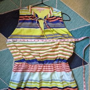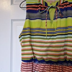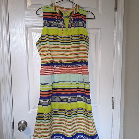 Colorful midi length Gibson Latimer dress in very good condition. Material is polyester with a liner. Contains two pockets! Measurements shown in photos.