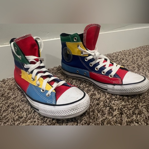 Size Women’s 9, Rarely Worn, Multicolred Patchwork converse. They are so cute and they elevate so many outfits. Not brand new but they are in amazing condition.