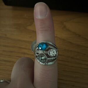 Beautiful three stone ring silver tone size 8-9 Great costume piece for work or play!