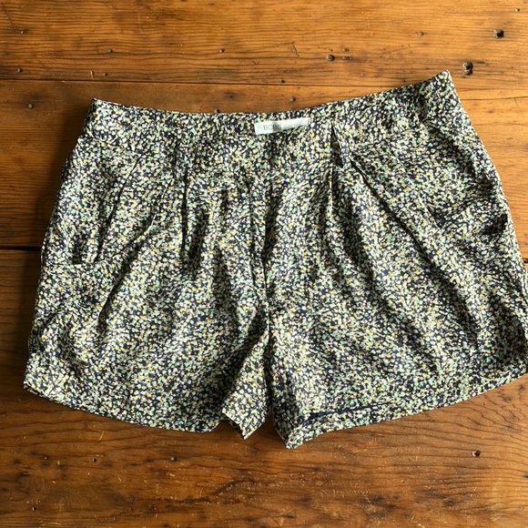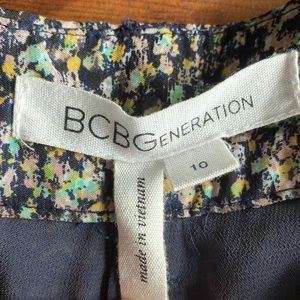 BCBGeneration shorts with fun multicolor print. 100% polyester and machine washable. Belt loops, metal clasp and button closure, and zipper. Pleated. Front pockets and back decorative pockets. Size 10. Excellent used condition.