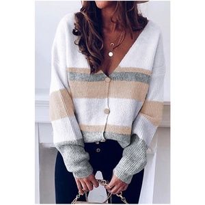 Multicolor striped vneck button down cardiGAN