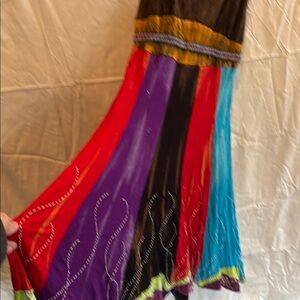 Vibrant and stylish, this multicolor sundress is perfect for any occasion. Featuring a mix of red, purple, blue, and brown, it adds a pop of color to your wardrobe. Ideal for a casual day out or a special event. Length (from top of shoulder to hem) 43”, p2p 15” (but LOTS of stretch)! This can easily fit someone smaller or larger!