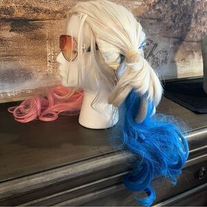 Multicolor 2 Pigtail Wig Pink & Blue Synthetic NEW