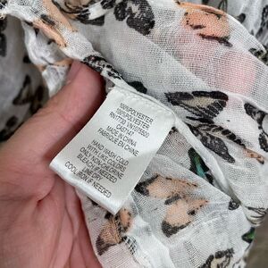 Very gently used condition, smoke and pet free home. No major flaws, might have a small pull or two but nothing crazy. Loved this one, I just have too many scarves and I need to downsize so Im selling. Its super cute and soft. Perfect for any butterfly lover! 100% Polyester.