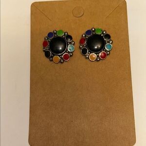 Add a pop of color to your outfit with these stunning multicolor gemstone stud earrings. Perfect for any occasion. 343