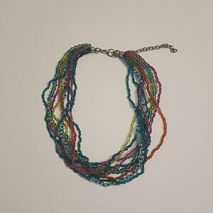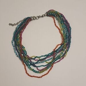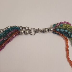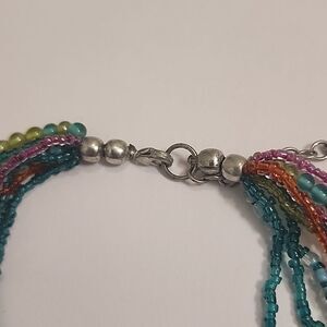 Multicolor Seed Bead Necklace. good condition, some tarnish present