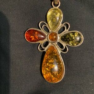 Cross for necklace has gemstones