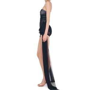 This striking babydoll dress features an asymmetrical high-low silhouette with ruffled layers, perfect for a cocktail or night out.