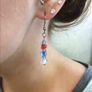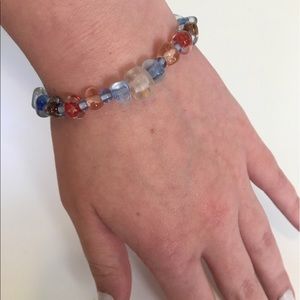 Multicolored Bracelet and Earrings made by me. Bracelet is stretchy and fits wrists 6-8 inches. Fish hook style earrings.