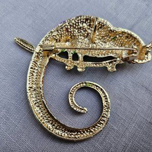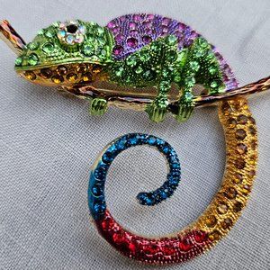 Hand-made Multi-colored Rhinestone Chameleon Brooch/Pin