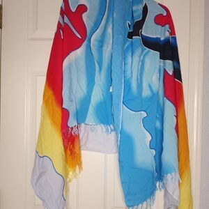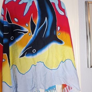 Multicolored Delphine Print Wrap Throw Beach Cover Up 100% Rayon with Fringe 40"×60".